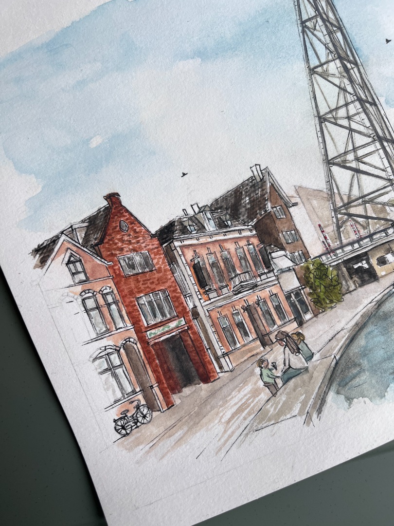 De Illustratie is gemaakt met aquarelverf en zwarte inkt.