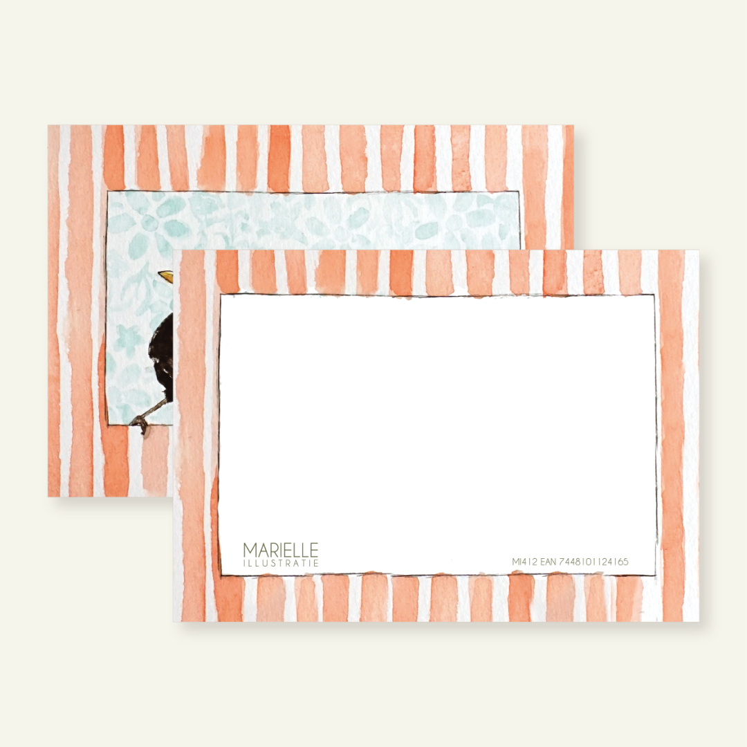 Wenskaart bevat rechte hoeken. Op de achterzijde is minimale informatie van de kaart zichtbaar.