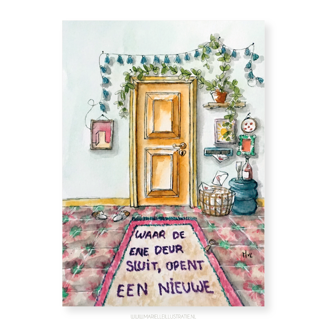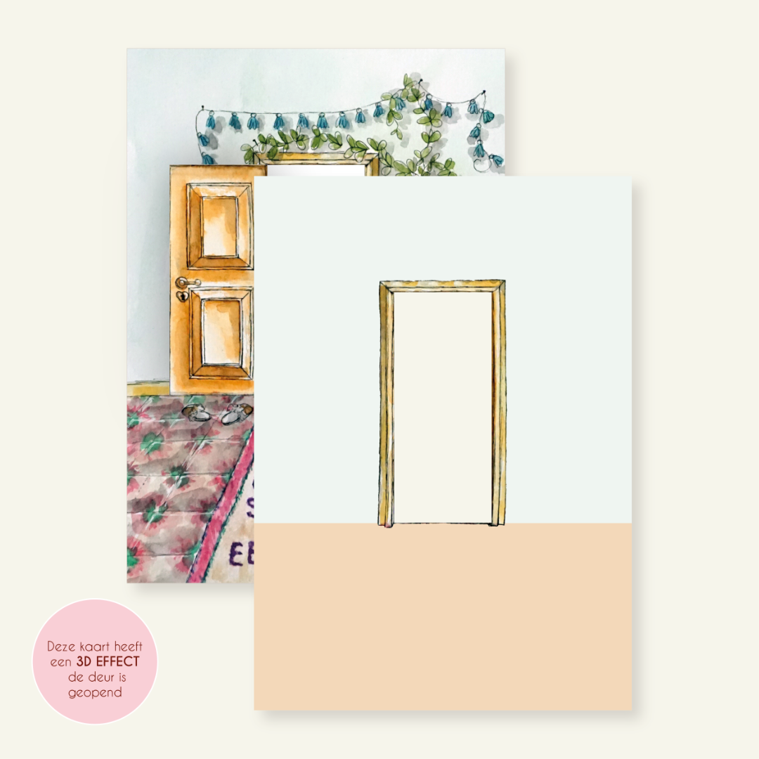 Een wenskaart waarbij de deur écht open en dicht kan.