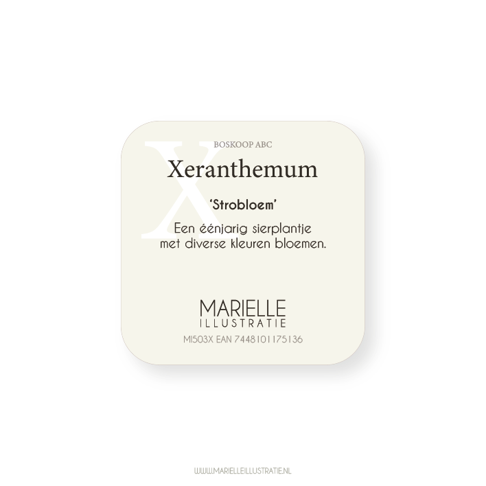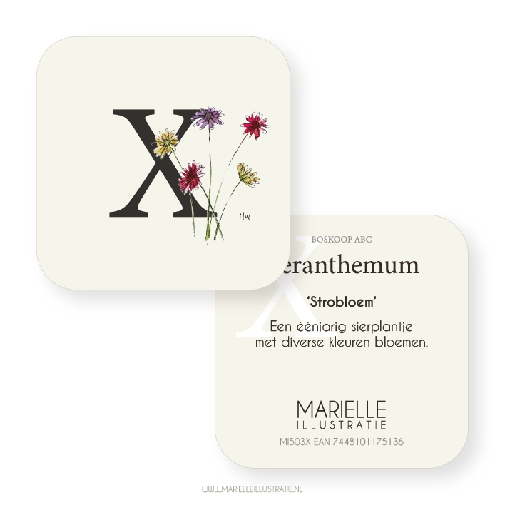 De kaart heeft een maat van 60x60mm en is dubbelzijdig gedrukt op 300 grams papier met zichtbare en voelbare structuur.
