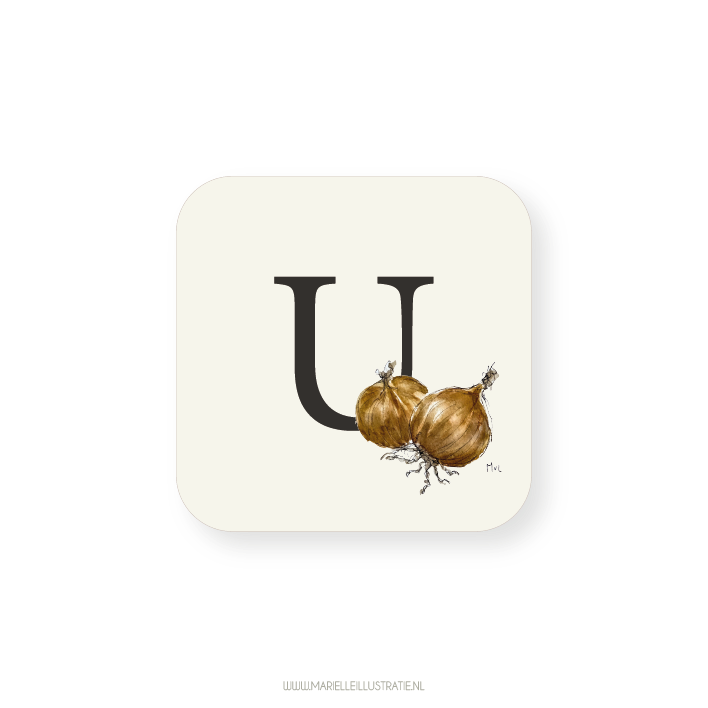 Aan de voorzijde staat de letter met een illustratie, aan de achterzijde de betekenis van de illustratie per letter.