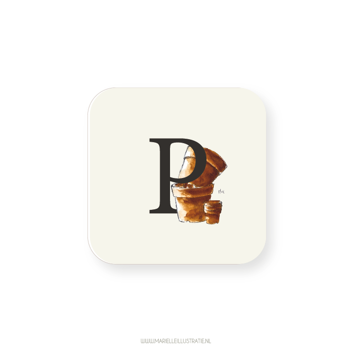 Aan de voorzijde staat de letter met een illustratie, aan de achterzijde de betekenis van de illustratie per letter.